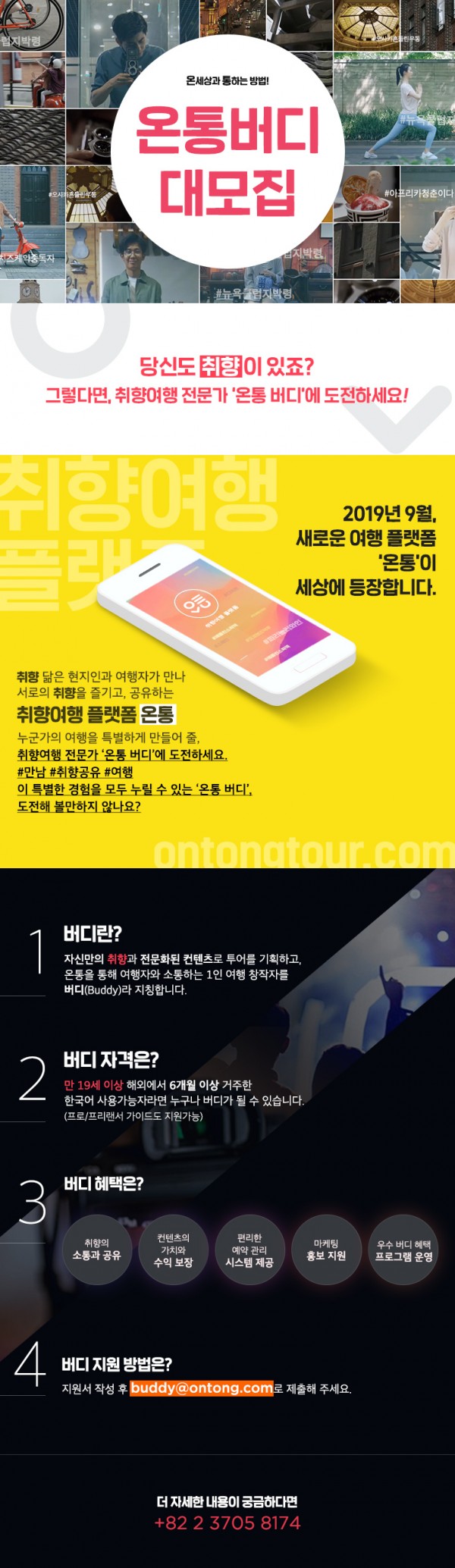 취향여행 플랫폼 ‘온통’에서 취향여행전문가 ‘버디’를 모집합니다.