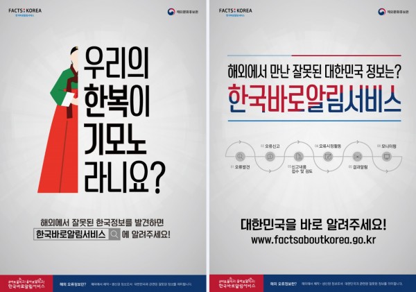 잘못 그려진 태극기, 코리안 기모노로 통하는 한복, 50년대 한국의 모습을 보고 아직도 빈민국가로 알고 있는 모습 등 그 동안 우리나라에 대한 잘못된 정보를 봐도 어디에 신고하고 어떻게 대응해야 할지 난감한 상황을 겪은 동포분들 많으시죠?