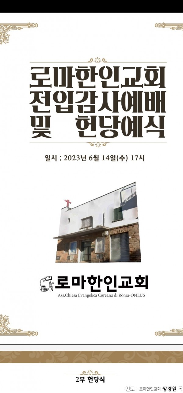 2023. 6. 14, 로마 한인교 전입감사 예배 및 헌당예식이 있으니