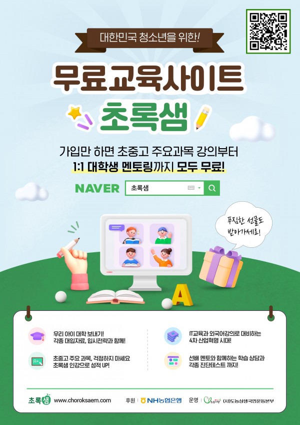 해외 거주 청소년(초중고생)을 위한 교육 사이트 '초록샘' 무상 지원
