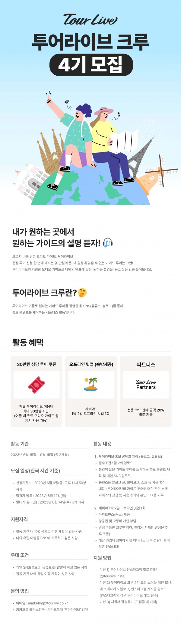 투어라이브 크루 4기 모집 [유럽 여행 하면서 경력 쌓자!]