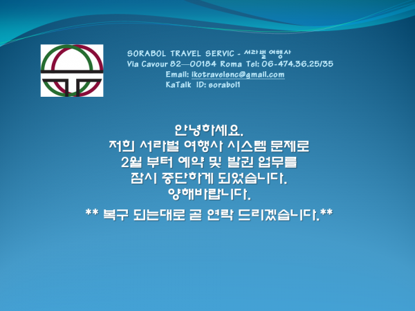 잠시 여행사 업무를 중단하게 되었음을 알려드립니다.