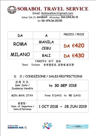 필리핀, 바리, 체부 항공권 대한항공