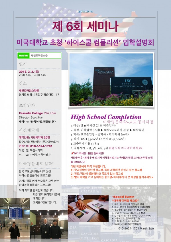 ◉ 미국 명문대학교초청 (하이스쿨 컴플리션 패스웨이) 입학설명회
