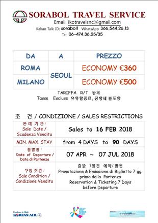 **서라벌 여행사** 대한항공 이코노미 좌석 프로 연장