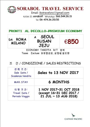 로마/밀라노-인천 구간 Cathay Pacific 항공사