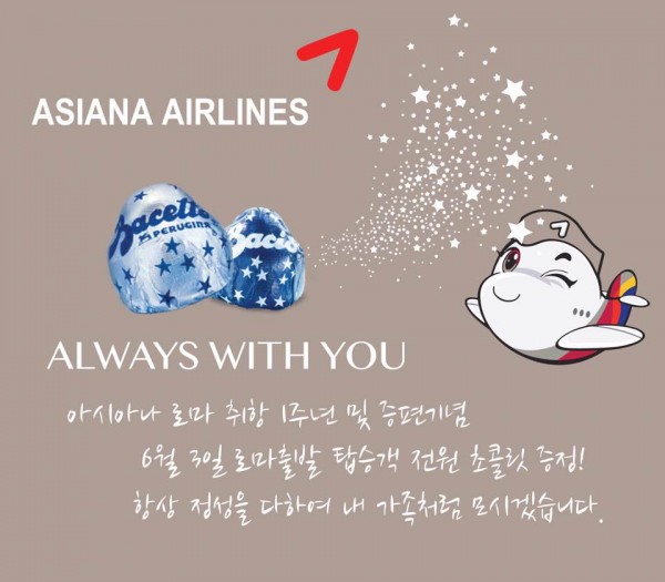 [아시아나] 로마 취항 1주년 ! 증편기념 6월 3일 탑승고객 전원 초콜릿 증정