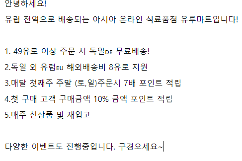 안녕하세요! 유럽 전역으로 배송되는 아시아 온라인 식료품점 유루마트입니다!