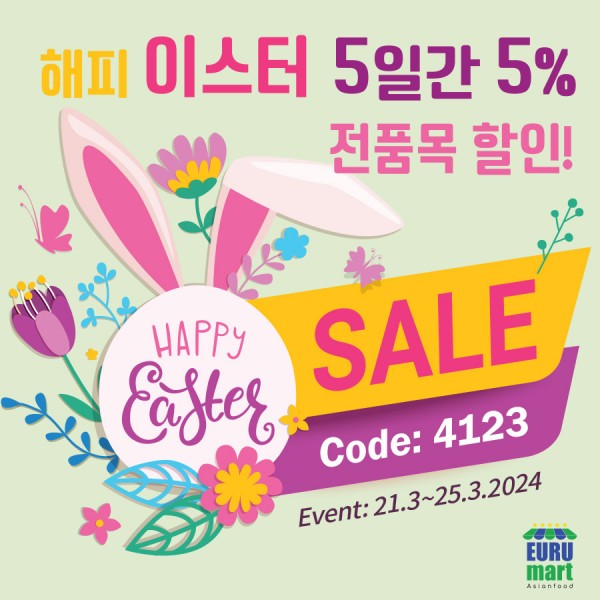 이번에 부활절 연휴를 맞이하여 저희 쇼핑몰은 5일동안 5프로 할인 행사를 진행할 예정입니다. 많은 관심 부탁드리고 인기상품은 조기 품절될수 있으니 필요하신 상품은 빠른 구매 부탁드리겠습니다.