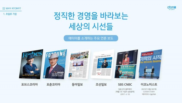 건강기능식품, 화장품, 생활용품 등 다양한 제품군을 통해 네트워크 마케팅 분야에서 소비자 피해가 단 한 건도 없어야 심사를 받을 수 있는 소비자 중심 경영을 공정거래위원회로부터 3회 연속 재인증 받았습니다.