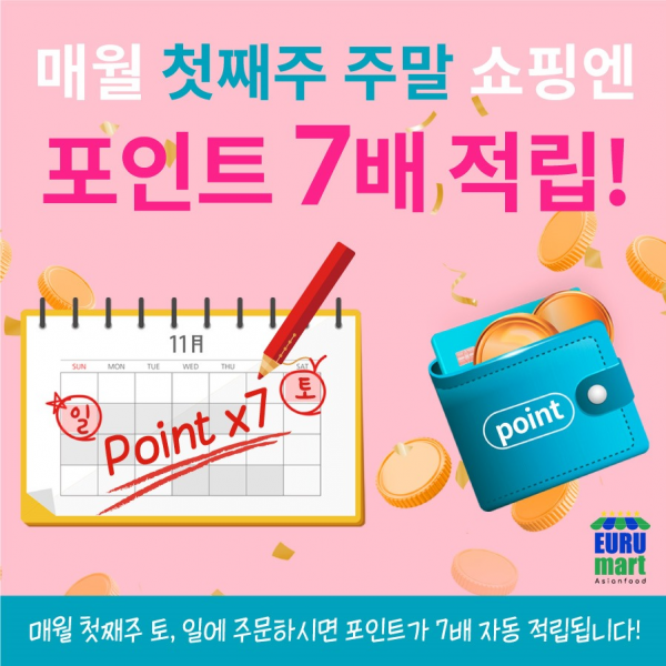 온라인 한인 유루마트 7배 포인트 적립 이벤트