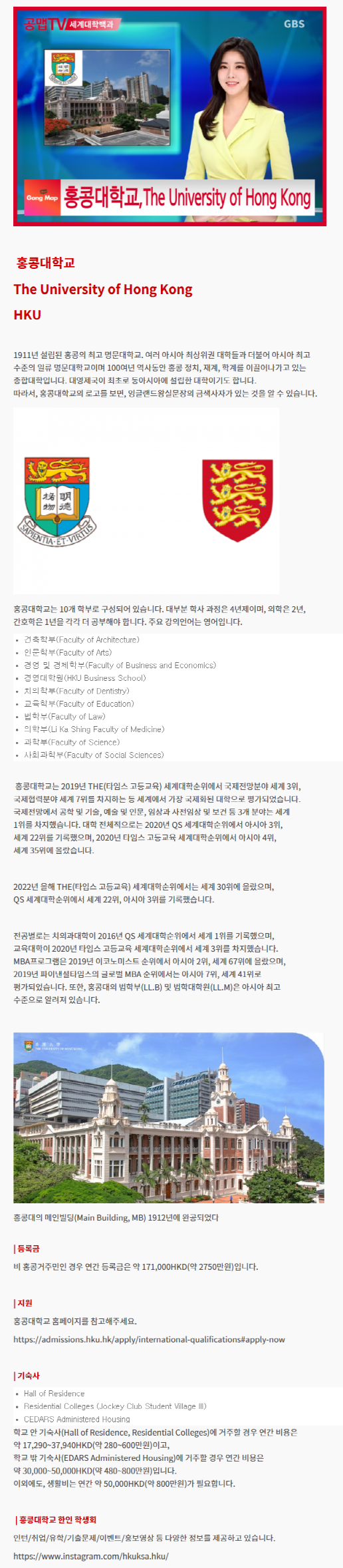 [세계대학백과]홍콩대학교 The University of Hong Kong, HKU
