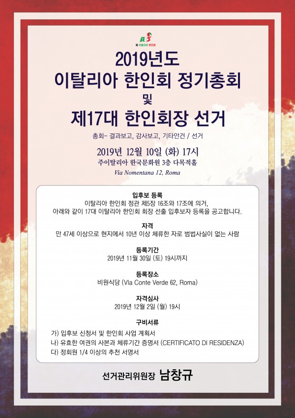 2019 이탈리아 한인회 정기총회 및 17대 한인회장 선거