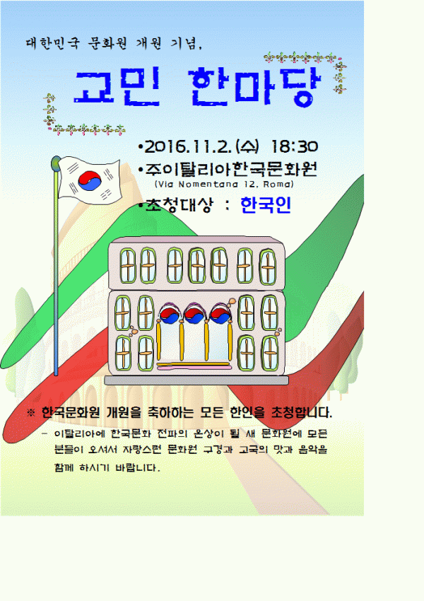 주이탈리아한국문화원 개원 기념, 교민 한마당 초청 안내