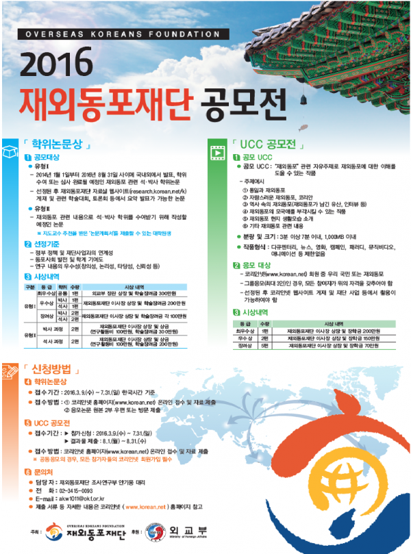 2016 재외동포재단 학위논문상 및 UCC공모전 개최 안내