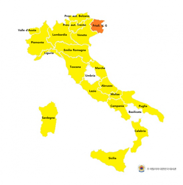 ● Zona Arancione(Orange Zone) : 프리울리베네치아줄리아(Fruili Venezia Giulia)