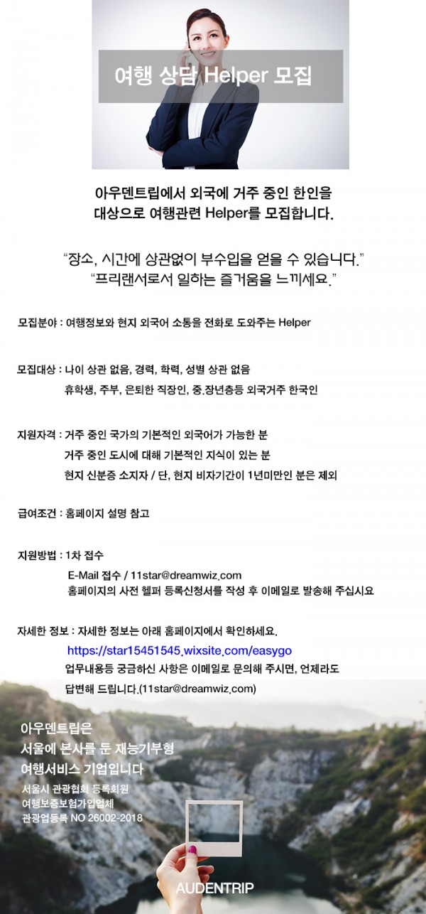 모집분야 : 한국인 여행자에게 전화로 여행정보 안내 및 현지외국어 서비스
