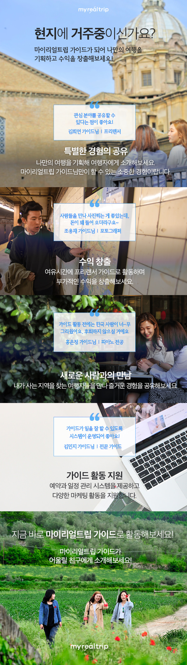 [마이리얼트립]에서 자신의 경험을 공유하며 활동하실 가이드를 모집합니다