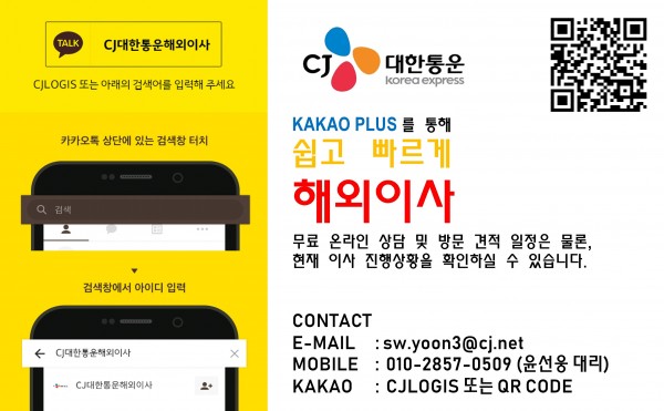 안녕하십니까, CJ대한통운 해외이주파트 윤선웅대리입니다.