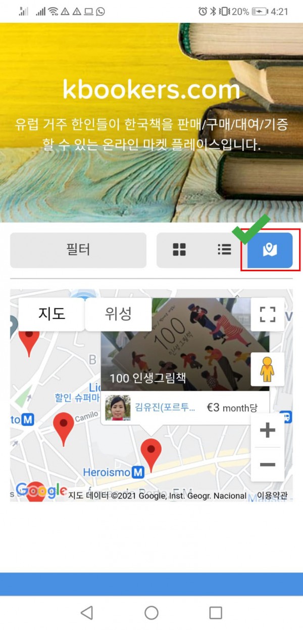 또 필터 기능으로 읽고 싶은 책의 종류/거주 나라 / 해외 배송 가능 여부를 필터 할 수 있고, 지도 기능으로 자기 주변에 등록된 책을 보실 수 있습니다. (이미지 참고)