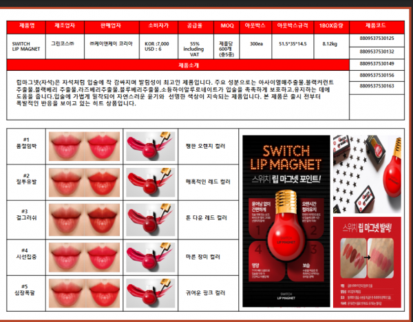 안녕하세요.한인회 회장님 및 관계자 그리고 동포 여러분 .먼저 건강과 번영을 기원드립니다.CNC트레이딩 정훈이사 입니다. 저희 CNC트레이딩은 한국의 20년 경력의 화장품 전문. 유통회사로써 풍부한 경력과 지식을 겸비한 직원들로. 구성된. 회사입니다ㆍ현제20개 브랜드. 1천 여종의 화장품을 전세계 독점권리를 가지고 제품 기획부터 판매까지 모든업무를 . 총괄 하고있는 화장품 유통사 입니다저희 CNC트레이딩은 제조사와 소비자 간의 합리적인 가격과 소비자가 믿고 사용할수있는 검증된 제품을 공급하기위해 끈임없이 연구하고 알릴것입니다. 끝으로 저희CNC에서 판매를 하고있는 신제품중 소비자와 바이어 분들에게 큰 인기를 얻고있는 제품 선별하여 추천드립니다.제품관련 궁금하신 사항은 문의 주십시요. 》CNC 트레이딩 / 정/ H.P 82-10-3645-5319 / nakata5319@naver.com