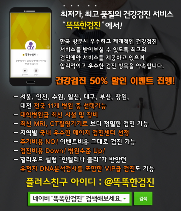* 똑똑한검진 플러스친구 : https://pf.kakao.com/_HwTxoM