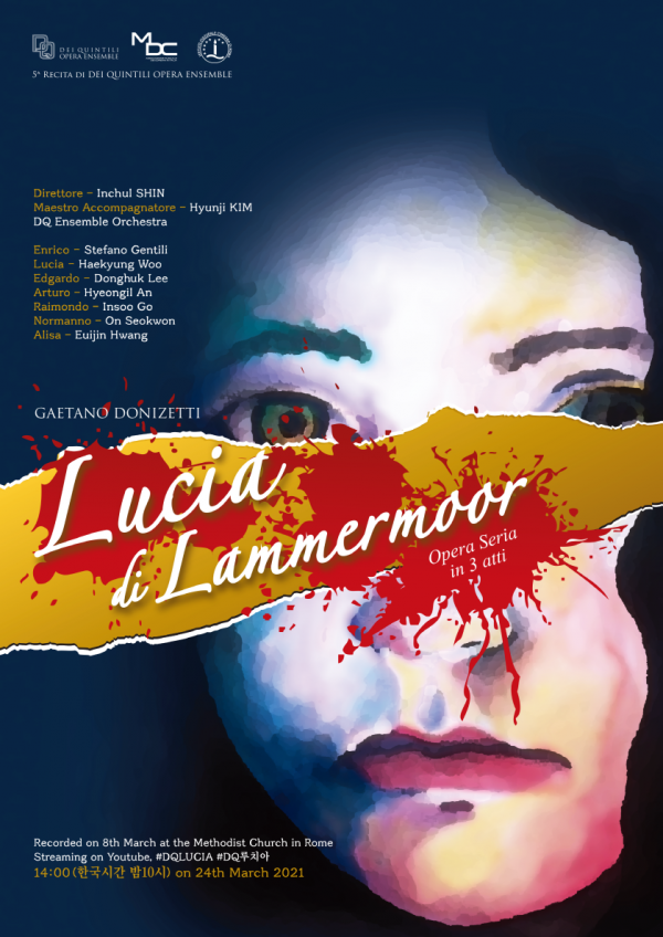 저희 DQ 오페라앙상블과 '재이탈리아 한인음악협회'가 합동제작한 '도니제티'의 오페라 '람메르무어의 루치아' 공연 소식을 알려드립니다.